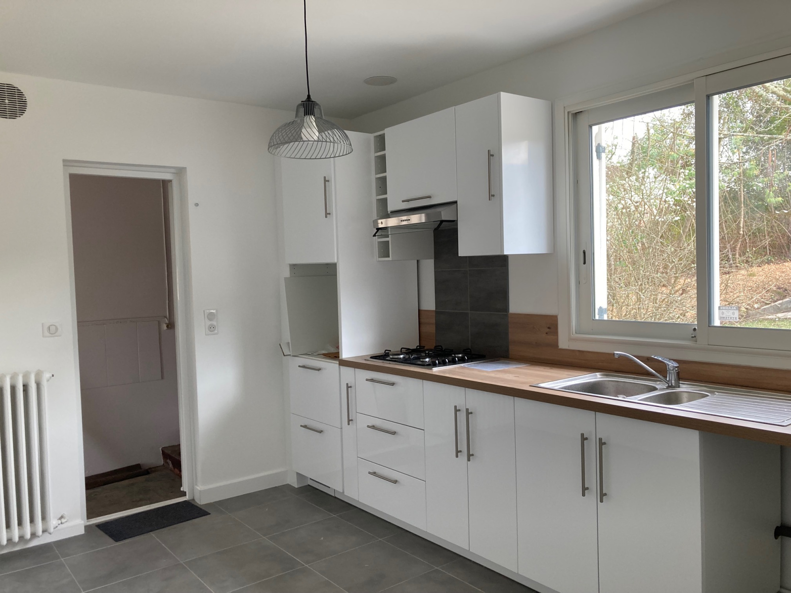 La maison rénovée de 95m2 de plain pied est composée d'une pièce de vie, une cuisine séparée, un wc, 3 chambres, une salle de bain. Le logement bénéficie d'un garage avec cave et d'un cabanon de jardin. Jardin arboré et entretenu.