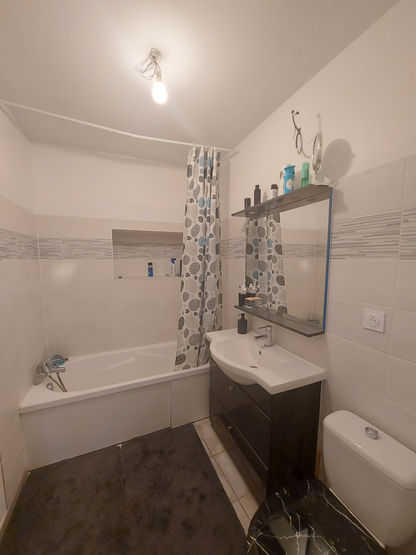 Appartement de 40m² composé d'une pièce de vie, une cuisine, une chambre, une salle d'eau.