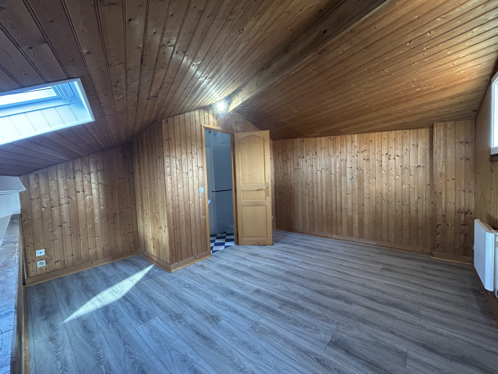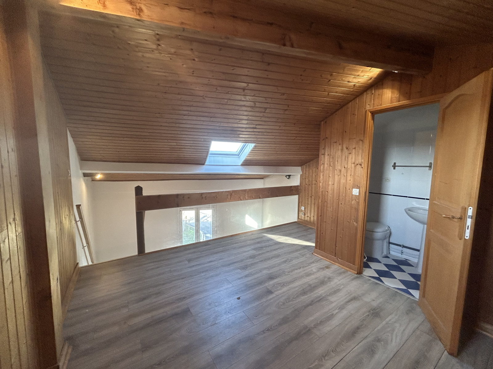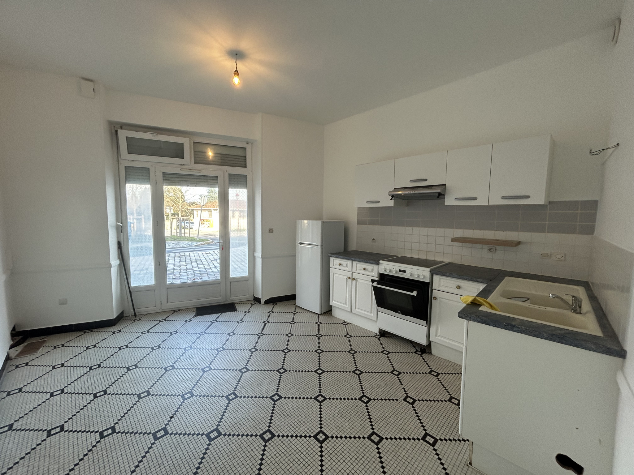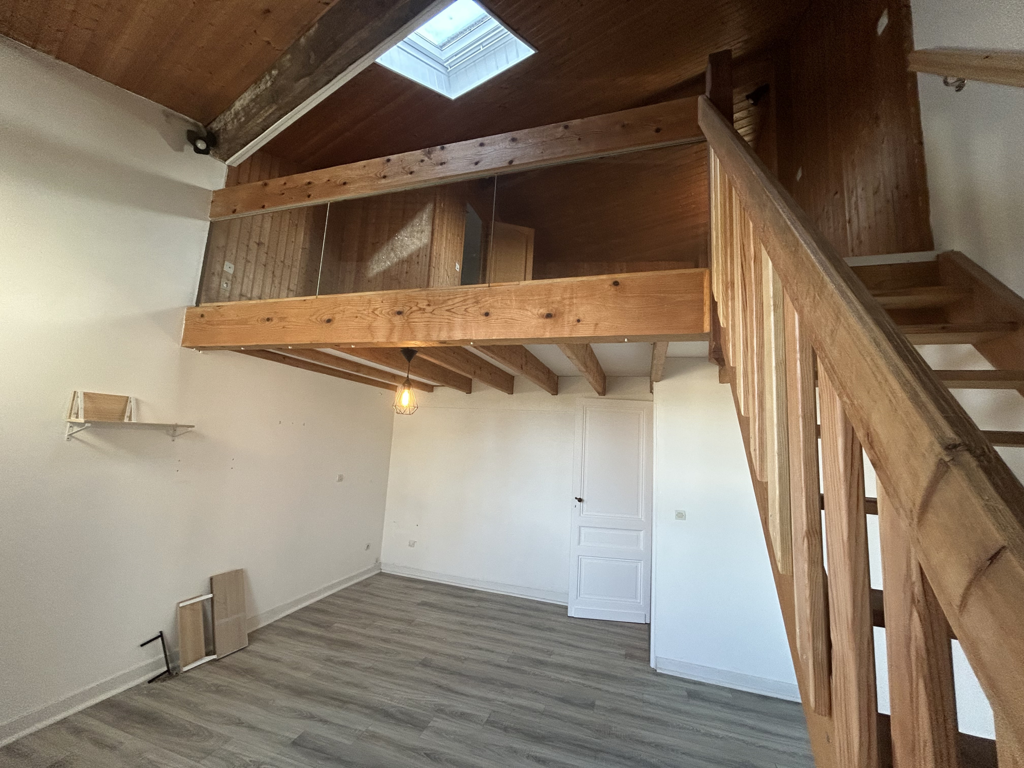 Le logement est un grand T2 Bis en triplex de 63 m2, comprenant en rez-de-chaussée une grande cuisine et 1 WC, à l'étage 1 séjour et une chambre avec une salle d'eau en mezzanine.