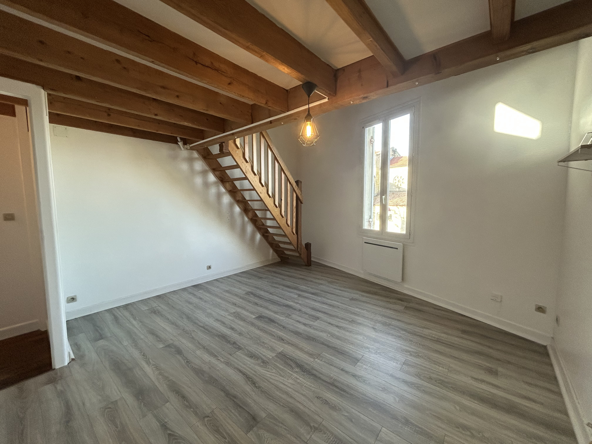Votre agence de gestion location BORDEAUX EVOLUTION IMMOBILIER vous propose ce bel appartement de Type 2 Bis en triplex dans le bourg de QUINSAC.