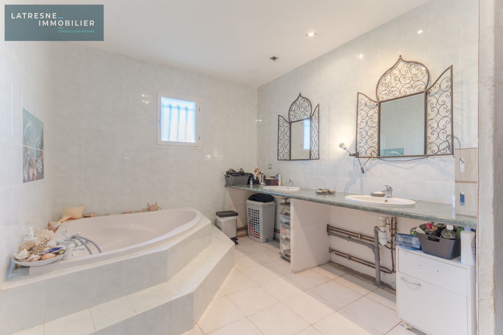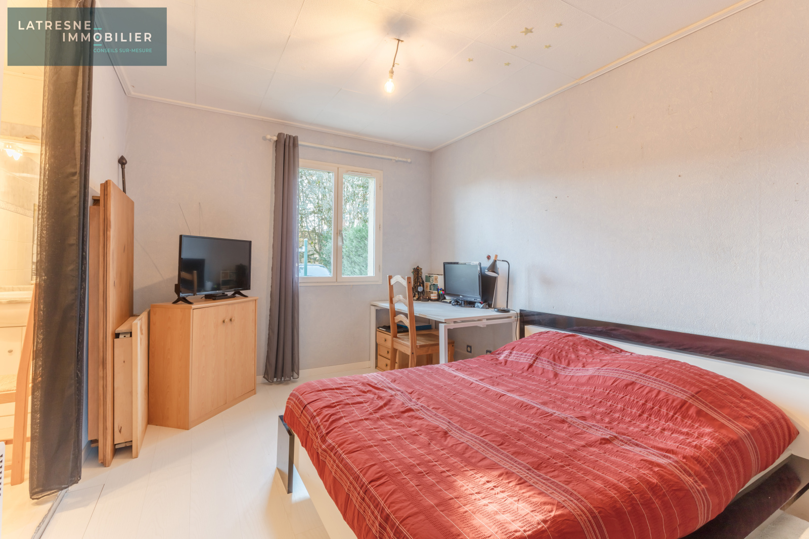 - Votre Agence LATRESNE IMMOBILIER vous propose cette maison plain pied de 117 m2 composée de 3 chambres dont une chambre parentale avec sa salle d'eau, un séjour traversant avec une grande mezanine, une cuisine séparée avec cellier attenant, une grande salle de bain. Une terrasse couverte pour profiter du jardin sans aucun vis-vis et au calme. Cette maison avec des travaux de rénovation fera le bonheur de votre famille. Environnement calme et verdoyant.