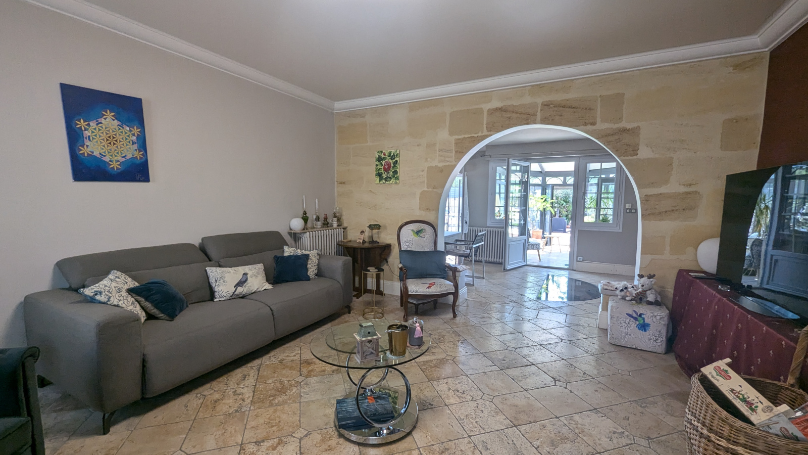 En plein centre de CAMBLANES et MEYNAC et à 15 minutes de BORDEAUX. Venez visiter cette bâtisse en pierre bordelaise d'environ 225m2 habitable ( avec dépendance). Vous trouverez en rez de chaussée, une entrée spacieuse, une cuisine entièrement aménagée et équipée ouverte sur sa salle à manger, un salon équipé d'une cheminée pour vos soirée d'hiver. Pour des moments calmes et de détente, un espace bibliothèque créé sur mesure par un menuisier. Une salle d'eau et WC séparés.