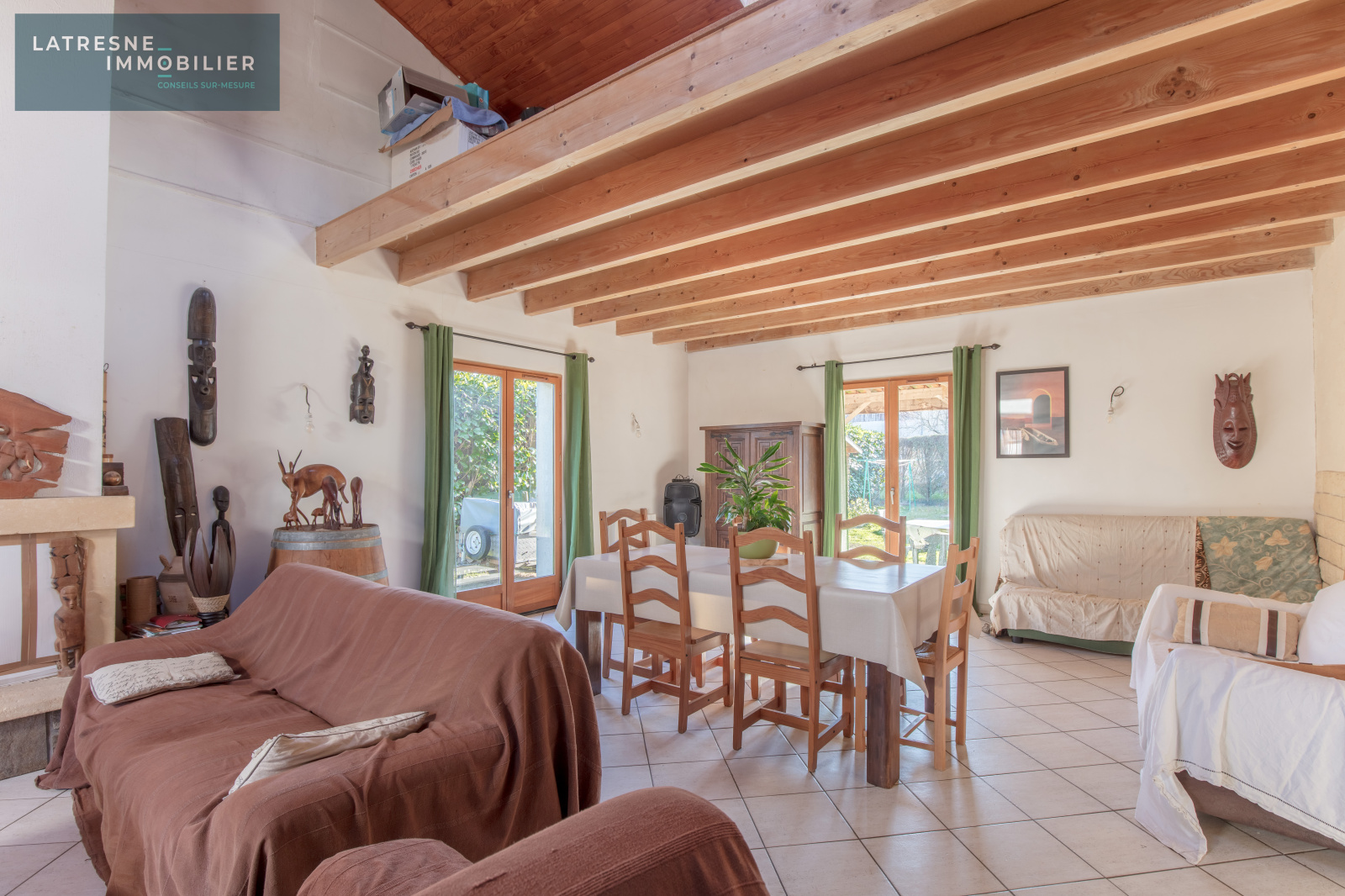 - Votre Agence LATRESNE IMMOBILIER vous propose cette maison plain pied de 117 m2 composée de 3 chambres dont une chambre parentale avec sa salle d'eau, un séjour traversant avec une grande mezanine, une cuisine séparée avec cellier attenant, une grande salle de bain. Une terrasse couverte pour profiter du jardin sans aucun vis-vis et au calme. Cette maison avec des travaux de rénovation fera le bonheur de votre famille. Environnement calme et verdoyant.