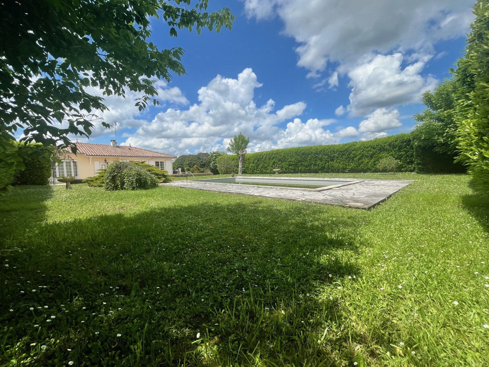 CREON IMMOBILIER vous présente cette maison de plain-pied de 125 m², parfaitement entretenue, avec 3 chambres, salon-séjour, bureau, et une salle de bain. Profitez d'un terrain clôturé de plus 1800 m² arboré et sans vis-à-vis, agrémenté d'une piscine traditionnelle. Notre équipe de professionnels est à votre disposition pour une visite et vous accompagner dans votre projet immobilier.