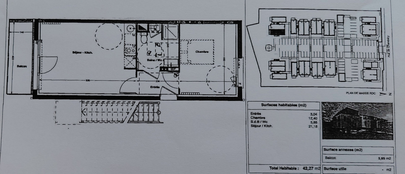 L’appartement se compose d’un séjour de 21m² avec cuisine ouverte, d’1 chambre et d’une salle d’eau avec wc.